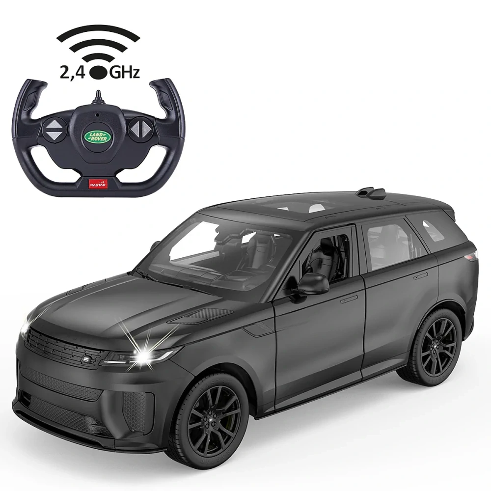 Range Rover Sport SV je nejvýkonnější a nejrychlejší vozidlo, jaké Land Rover kdy vyrobil. Je poháněn 4,4litrovým motorem V8 s dvojitým turbodmychadlem a mírným hybridním pohonem, který má výkon 635 koní a točivý moment 750 Nm. Zrychluje z 0 na 100 km/h za pouhých 3,8 sekundy a dosahuje maximální rychlosti 290 km/h. Nyní se sen o řízení takového Land Roveru může stát skutečností. S tímto oficiálně licencovaným modelem Deluxe Car v měřítku 1:24 od JAMARA si můžete přinést pocit vlastnictví skutečného sportovního SUV do svého domova. Vozidlo je vybaveno předními LED světly, detailním interiérem a pečlivě replikovanými originálními prvky na podvozku a karoserii a zaujme svou vysokou kvalitou zpracování. Moderní technologie 2,4 GHz umožňuje plynulý provoz více hráčů bez rušení frekvence. Průhledné čelní sklo nabízí výhled do realistického kokpitu, zatímco autentický, extravagantní lak podtrhuje působivý design modelu. Díky gumovým pneumatikám s dezénem, přednímu a zadnímu odpružení a diferenciálu pro stabilní jízdu lze model pomocí dálkového ovládání přesně řídit ve všech směrech. Ručně otevíratelné dveře, nastavitelný trim řízení a automaticky reagující LED světla dotvářejí realistický zážitek z jízdy. Toto miniaturní mistrovské dílo, které je ideální pro děti od 6 let, přináší zábavu a vzrušení z jízdy do každého pokoje. Je čas vyrazit na pořádnou jízdu a zábava může začít!